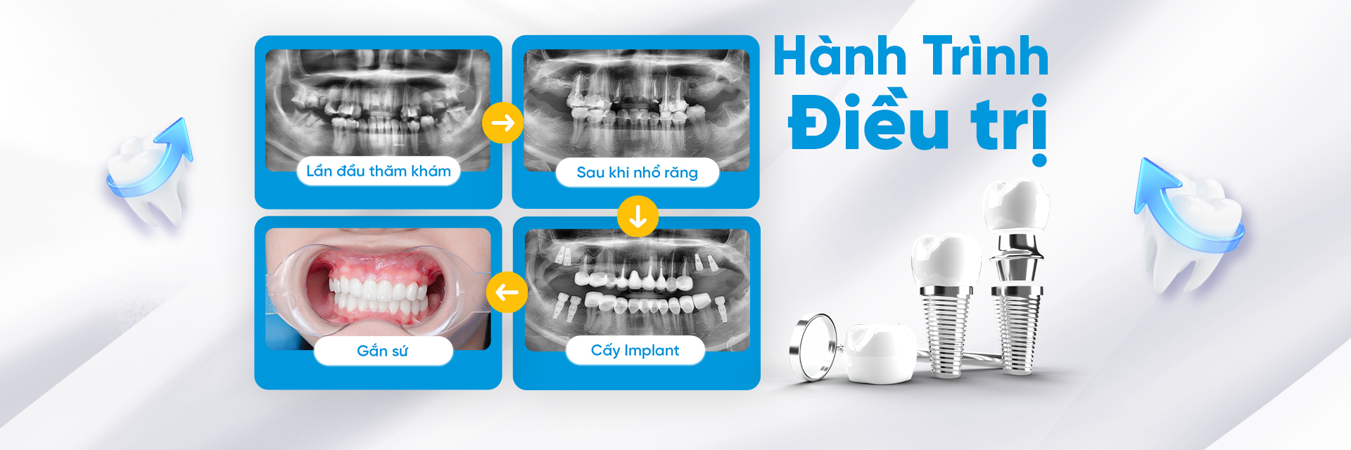 - Hàm trên: Ghép 4 trụ Implant Bio3